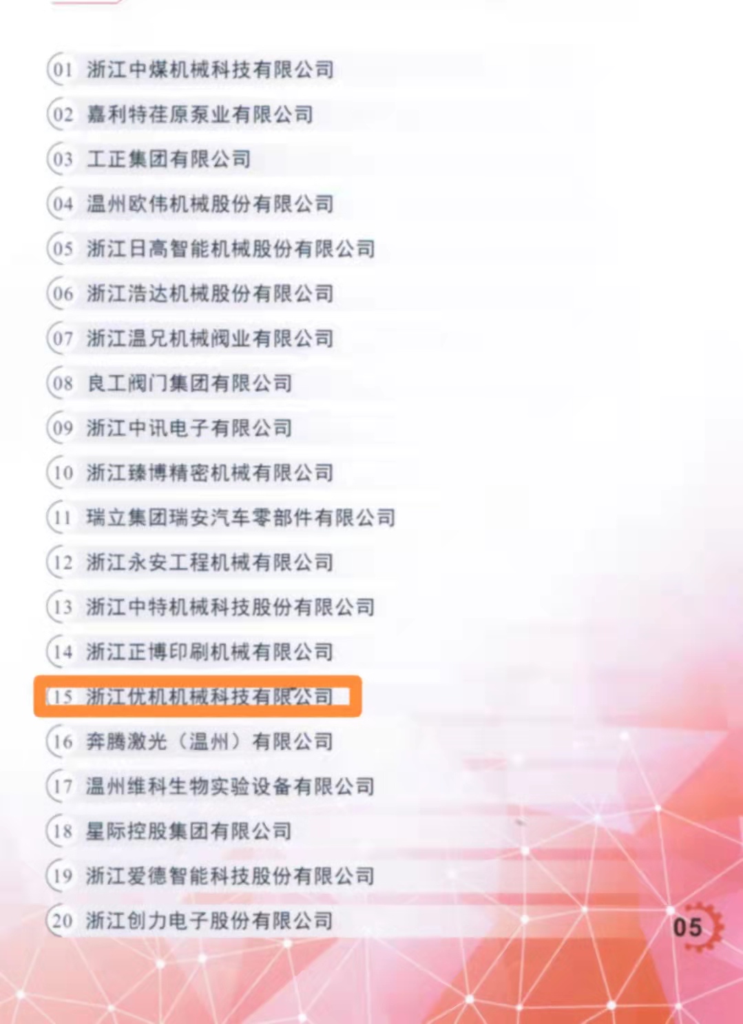 浙江優機機械科技有限公司 在溫州市智造業高質量發展大會入榜溫州好產品智造新勢力光榮榜,主辦單位溫州市經濟和信息化局。