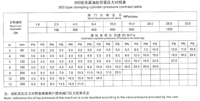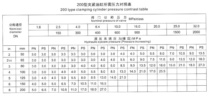 五、測試閥門時(shí),首先根據(jù)被試閥門試驗(yàn)壓力,要求參照《壓緊油缸所需壓力對照表》中液壓壓緊系統(tǒng)壓力值,進(jìn)行增壓壓力調(diào)節(jié),嚴(yán)禁增壓壓力值超高、防止被試閥門變形損壞。