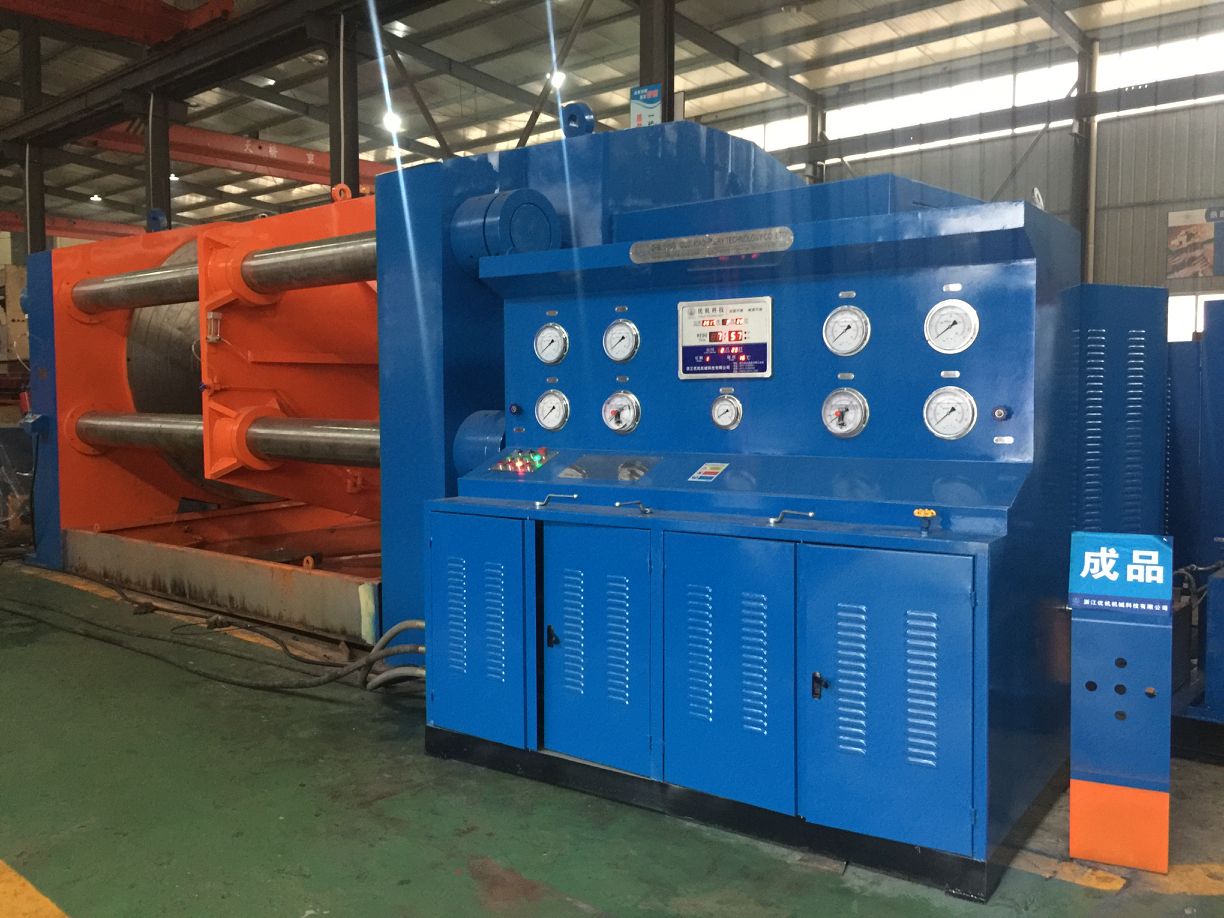 JWT-1200大口徑全焊接球閥試驗臺是頂壓式液壓試驗臺是我公司吸取 了國內(nèi)外同類產(chǎn)品技術(shù)精華,自主研發(fā)的新一代頂壓式液壓閥門測試臺并擁有國家技術(shù)專利知識產(chǎn)權(quán),專利號ZL2016 1 0240324.1,解決了大型全焊接球閥壓力試驗困難、原始試壓不規(guī)范和測試過程的安全隱患問題。它具有結(jié)構(gòu)緊湊,功能完善,性能穩(wěn)定,操作方便等特點(diǎn)。液壓系統(tǒng)采用了卸荷保 壓功能,在連續(xù)開機(jī) 50 小時條件下,液壓油溫升低于 35℃,節(jié)省了測試過程的 能源消耗并提高了設(shè)備使用壽命,是其它同類產(chǎn)品所無法比擬的。JWT型大口徑全焊接閥門測試臺可以廣泛適用于閥門生產(chǎn)廠家、全焊接球閥用戶熱力公司、城網(wǎng)管道工程公司、天然氣管道工程公司等大口徑焊接式法蘭式閥門的殼體強(qiáng)度和密封性能試驗,試 驗壓力介質(zhì)為水、氣、油均可。試驗的方式完全符合 GB/T13927-92《通用閥門 壓力試驗》和 JB/T9092-1999《閥門的檢測與試驗》以及 API 598 和 API 6D 的標(biāo)準(zhǔn) 規(guī)范要求。